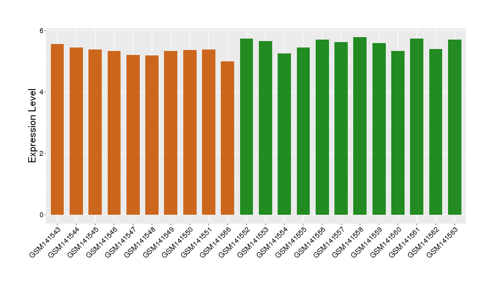 | Level of differential expression between the patients in the disease section of the tissue and the tissues of healthy individual | Fold-change: -0.25 Z-score: -0.67 P-value: 2.89E-01 |